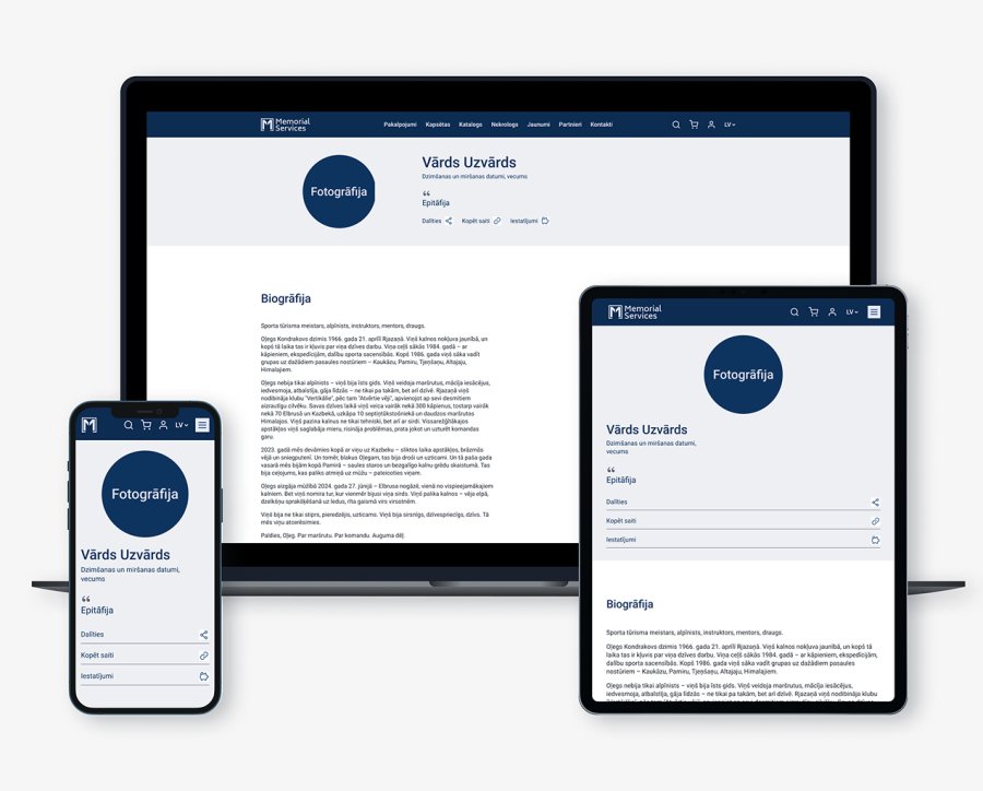 Katrā dzīvē ir stāsts, ko ir vērts atcerēties. Ar mūsu platformu Jūs varat bez maksas un vienkārši izveidot nekrologu – ar biogrāfiju, epitāfijām, fotogrāfijām un galeriju.