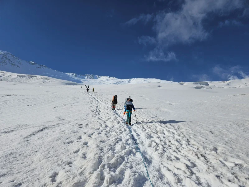 В 2023 году мы ходили с ним на Казбек — в непогоду, шквальный ветер и снежную метель. И всё равно рядом с Олегом было безопасно и надёжно. А летом того же года мы были вместе на Памире — в сиянии солнца и красоте бесконечных хребтов. Это было путешествие, которое запомнится на всю жизнь — благодаря ему.