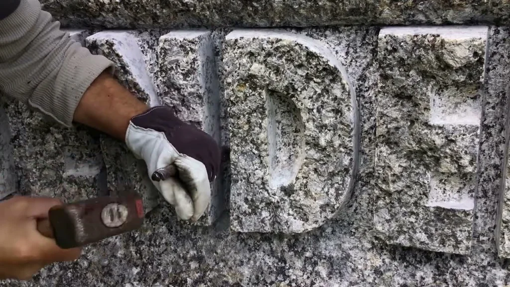 Mājas saimnieks Māris uzreiz bez aplinkiem pateica - mums te laukos nav svarīgi kā tas izskatās, svarīgi lai tas strādā!! Mājvārda zīmes burtu dziļums sasniedz 6cm. Dziļie burti vienmēr labi strādā, tāpat kā akmenī iekaltā spēk...